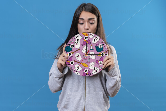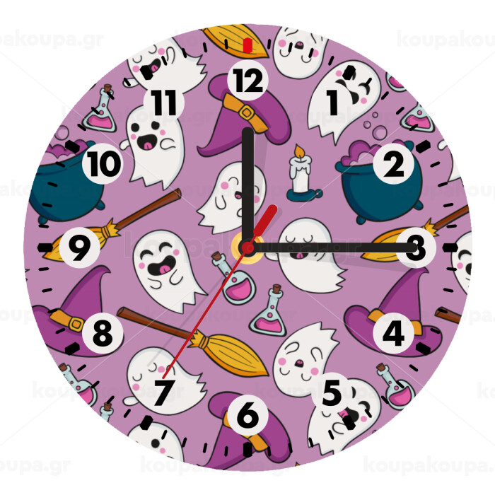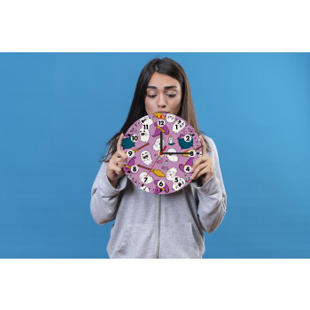 Happy Halloween pink, Ρολόι τοίχου ξύλινο (20cm)