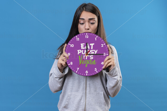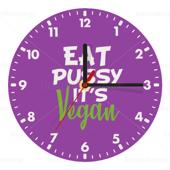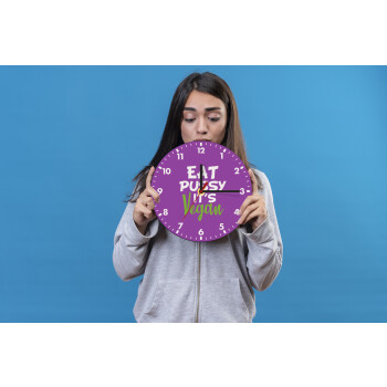 EAT pussy it's vegan, Ρολόι τοίχου ξύλινο (20cm)
