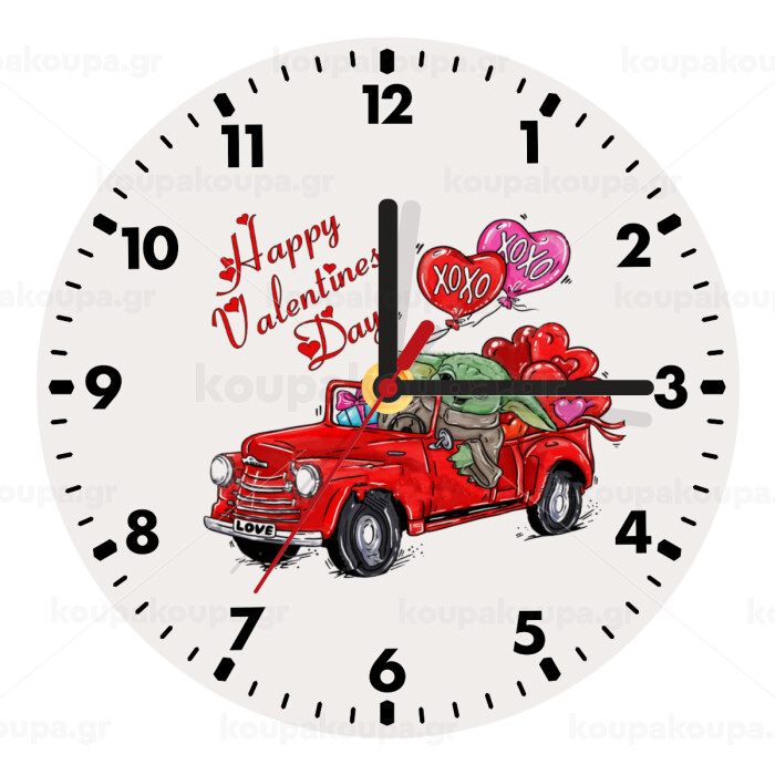 Yoda, happy valentines day (xoxo), Ρολόι τοίχου ξύλινο (20cm)