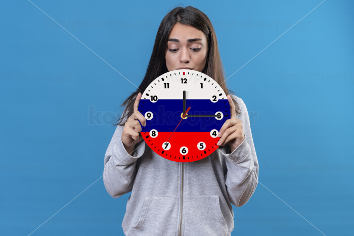 Russia flag, Ρολόι τοίχου ξύλινο (20cm)