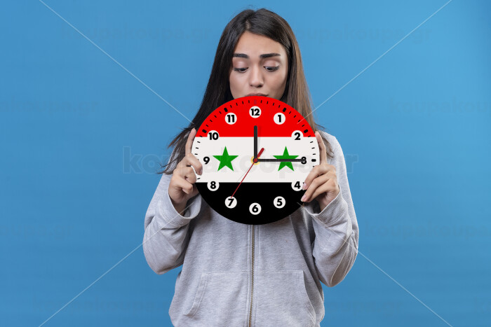 Syria flag, Ρολόι τοίχου ξύλινο (20cm)