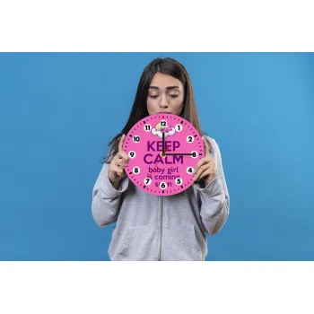 KEEP CALM baby girl is coming soon!!!, Ρολόι τοίχου ξύλινο (20cm)