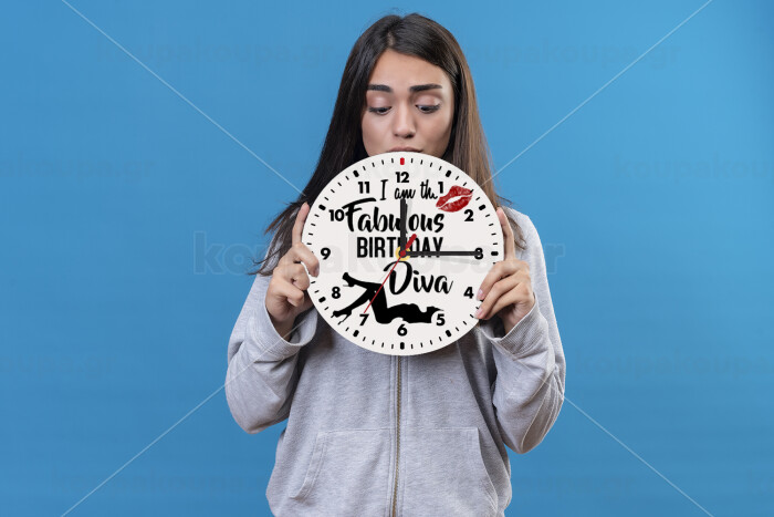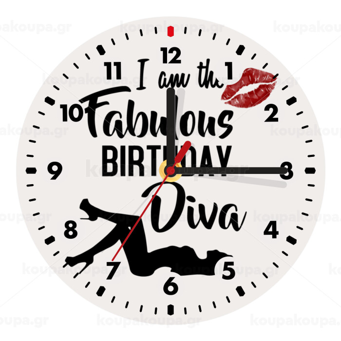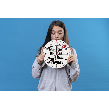 I am the fabulous Birthday Diva, Ρολόι τοίχου ξύλινο (20cm)