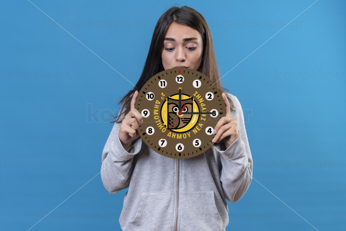 Έμβλημα Σχολικό brown, Ρολόι τοίχου ξύλινο (20cm)