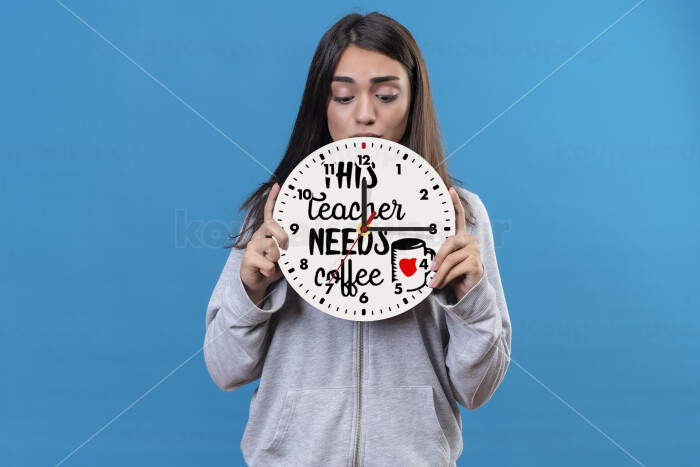 Τhis teacher needs coffee, Ρολόι τοίχου ξύλινο (20cm)