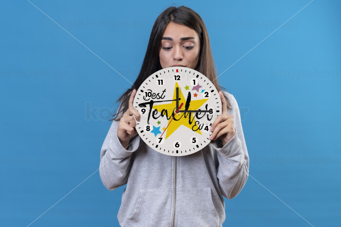 Teacher super star!!!, Ρολόι τοίχου ξύλινο (20cm)