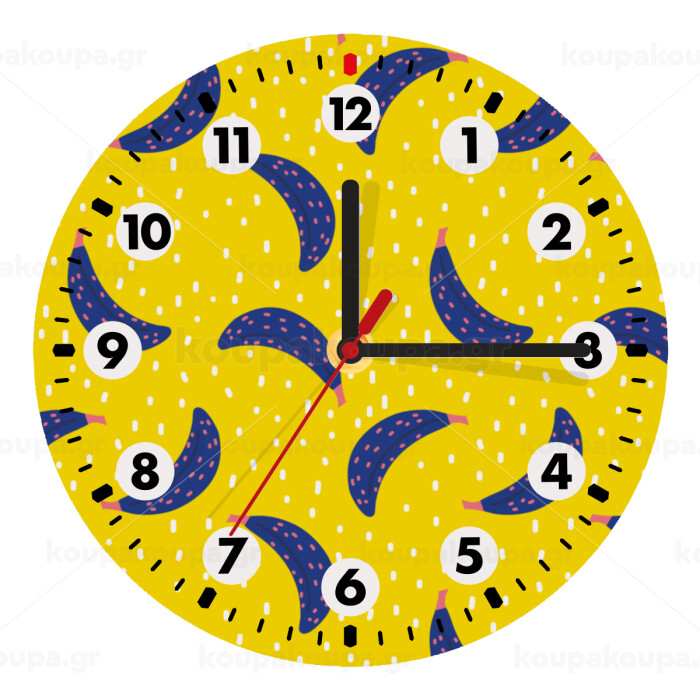 Yellow seamless with blue bananas, Ρολόι τοίχου ξύλινο (20cm)
