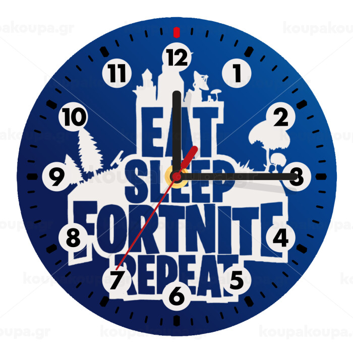 Eat Sleep Fortnite Repeat, Ρολόι τοίχου ξύλινο (20cm)