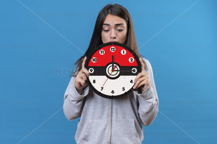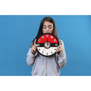 Pokemon ball, Ρολόι τοίχου ξύλινο (20cm)