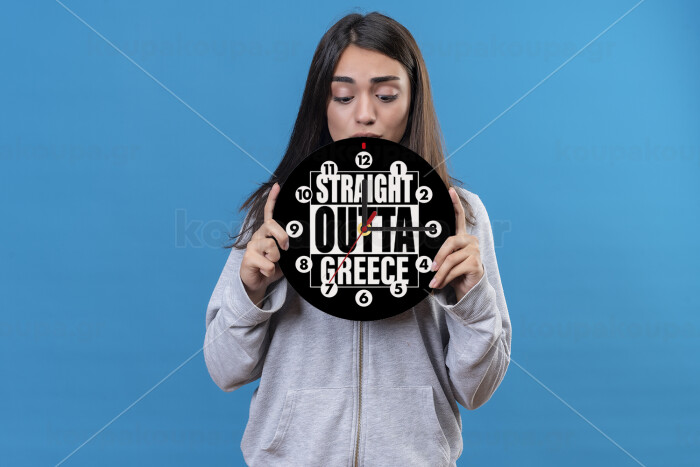 Straight Outta greece, Ρολόι τοίχου ξύλινο (20cm)