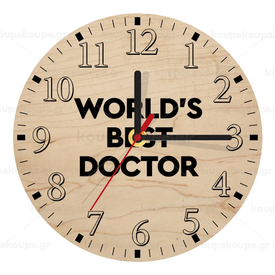 World's Best Doctor, Ρολόι τοίχου ξύλινο plywood (20cm)