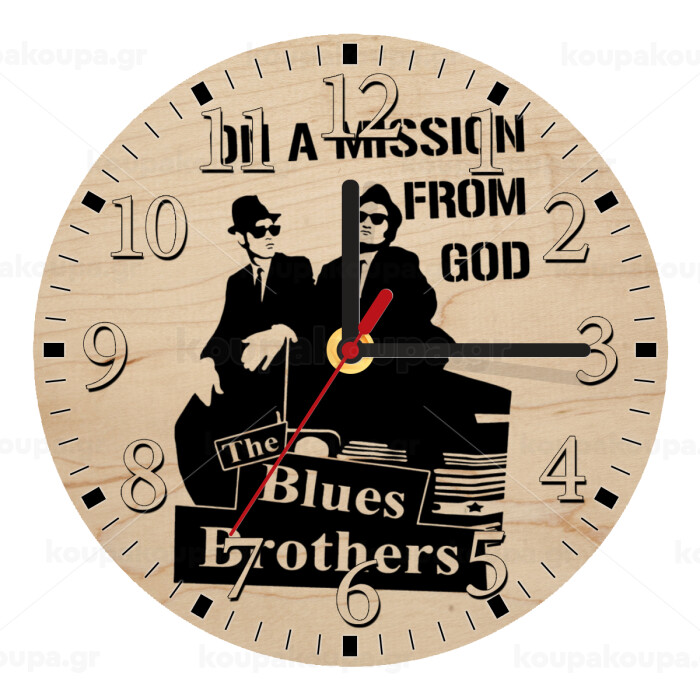 Blues brothers on a mission from God, Ρολόι τοίχου ξύλινο plywood (20cm)