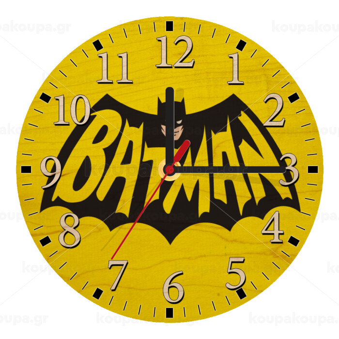 Batman classic logo, Ρολόι τοίχου ξύλινο plywood (20cm)