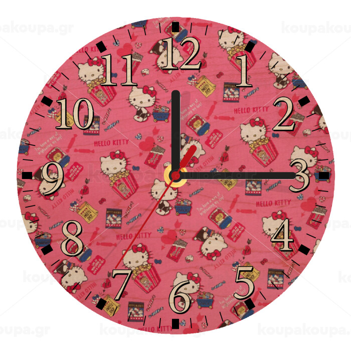 Hello kitty, Ρολόι τοίχου ξύλινο plywood (20cm)