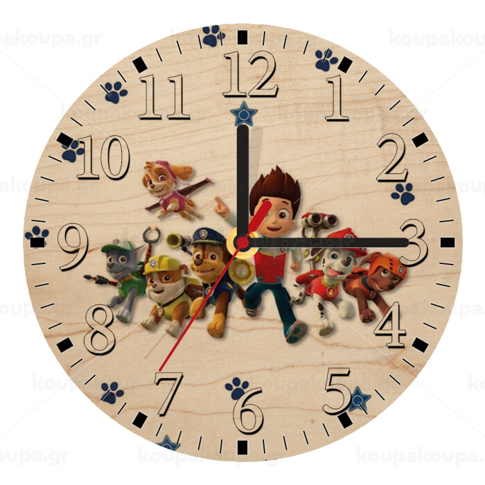 paw patrol, Ρολόι τοίχου ξύλινο plywood (20cm)