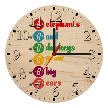 Elephants And Donkeys Grow Big Ears, Ρολόι τοίχου ξύλινο plywood (20cm)