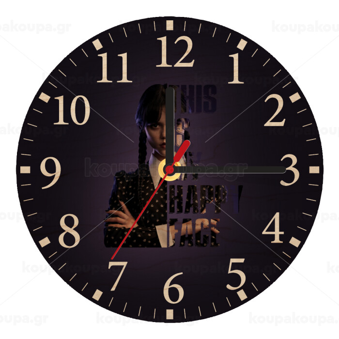 Wednesday, This is my happy face, Ρολόι τοίχου ξύλινο plywood (20cm)