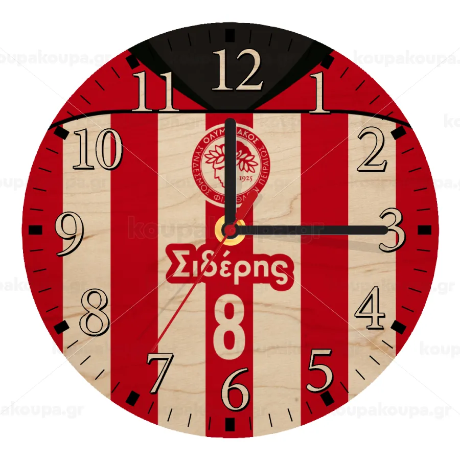 Ολυμπιακός εμφάνιση, Ρολόι τοίχου ξύλινο plywood (20cm)