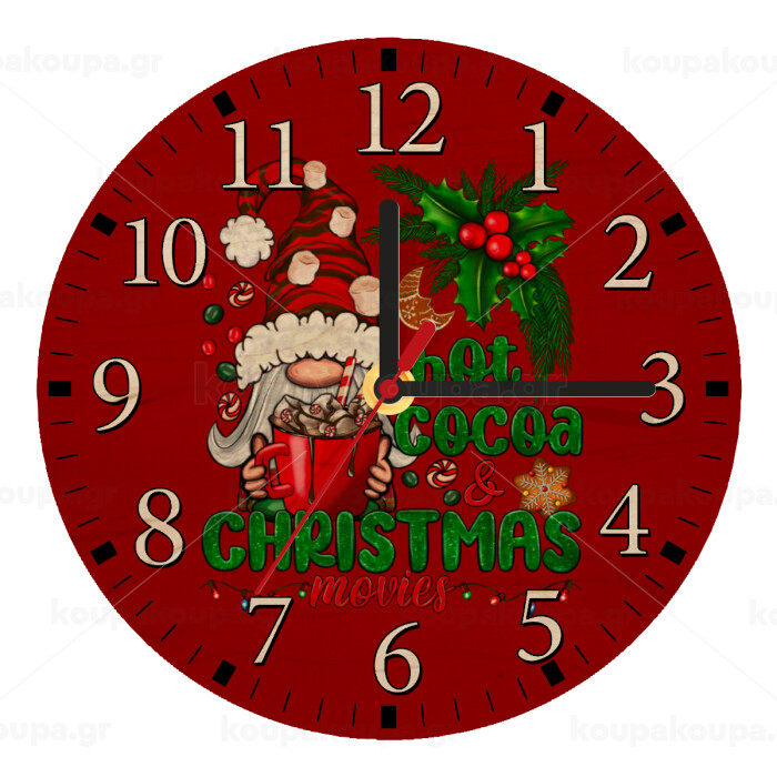 Hot cocoa and Christmas movies, Ρολόι τοίχου ξύλινο plywood (20cm)