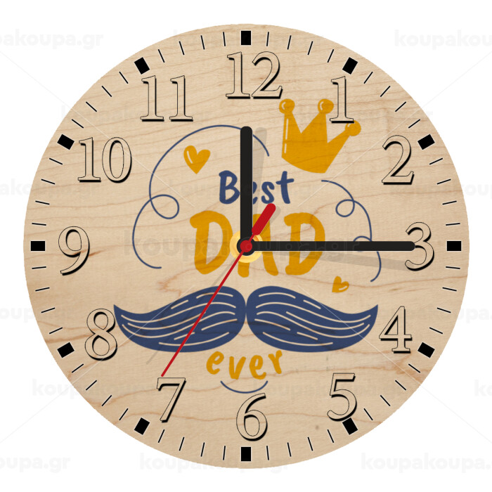 Best dad ever ο Βασιλιάς, Ρολόι τοίχου ξύλινο plywood (20cm)