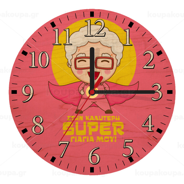Στην καλύτερη Super γιαγιά μου!, Ρολόι τοίχου ξύλινο plywood (20cm)