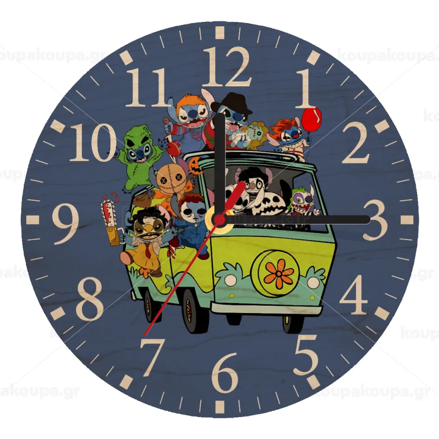 Stitch Halloween scooby car, Ρολόι τοίχου ξύλινο plywood (20cm)