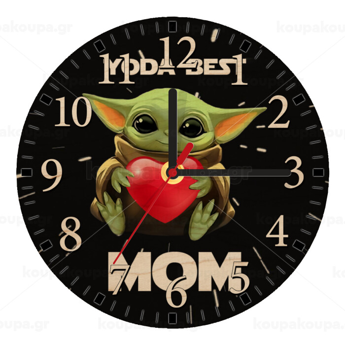 Yoda Best mom, Ρολόι τοίχου ξύλινο plywood (20cm)