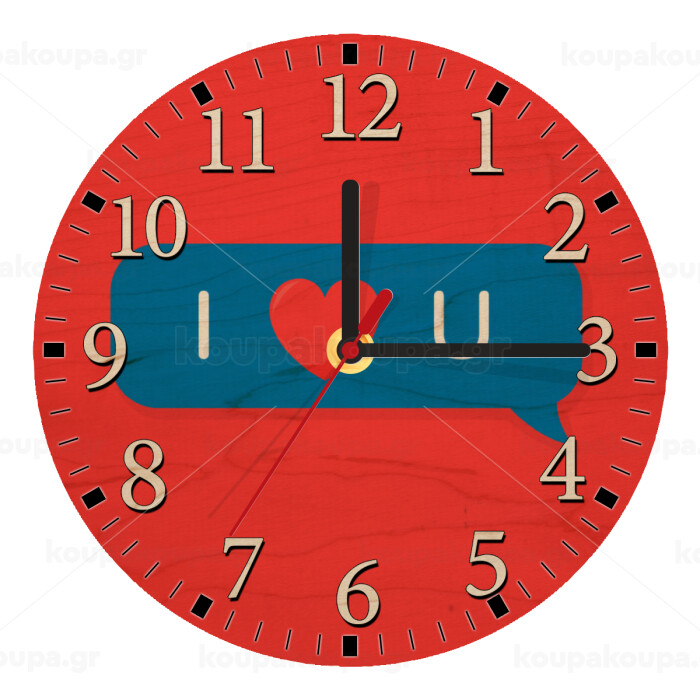 I Love You text message, Ρολόι τοίχου ξύλινο plywood (20cm)