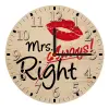 Mrs always right kiss, Ρολόι τοίχου ξύλινο plywood (20cm)