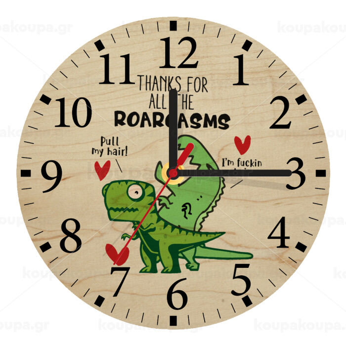 Thanks for all the ROARGASMS, Ρολόι τοίχου ξύλινο plywood (20cm)