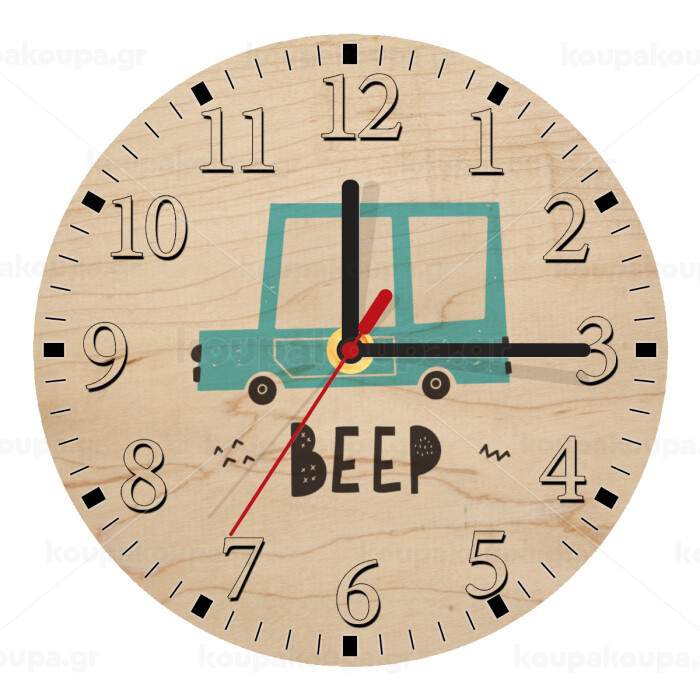 Car BEEP..., Ρολόι τοίχου ξύλινο plywood (20cm)