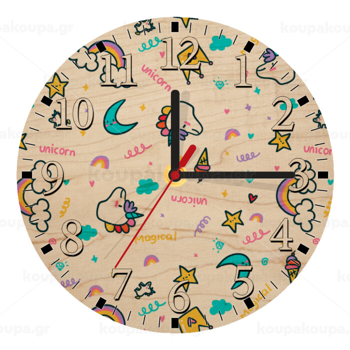 Unicorn pattern white, Ρολόι τοίχου ξύλινο plywood (20cm)