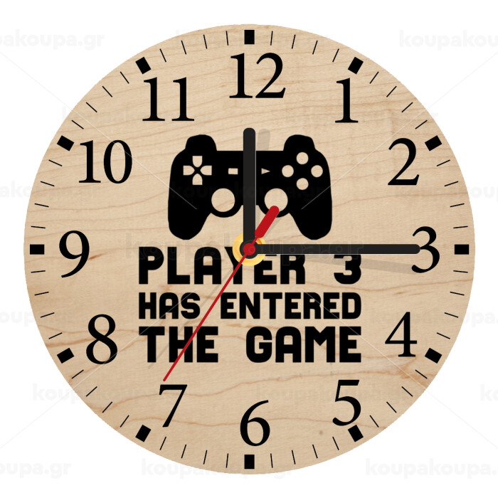 Player 3 has entered the Game, Ρολόι τοίχου ξύλινο plywood (20cm)
