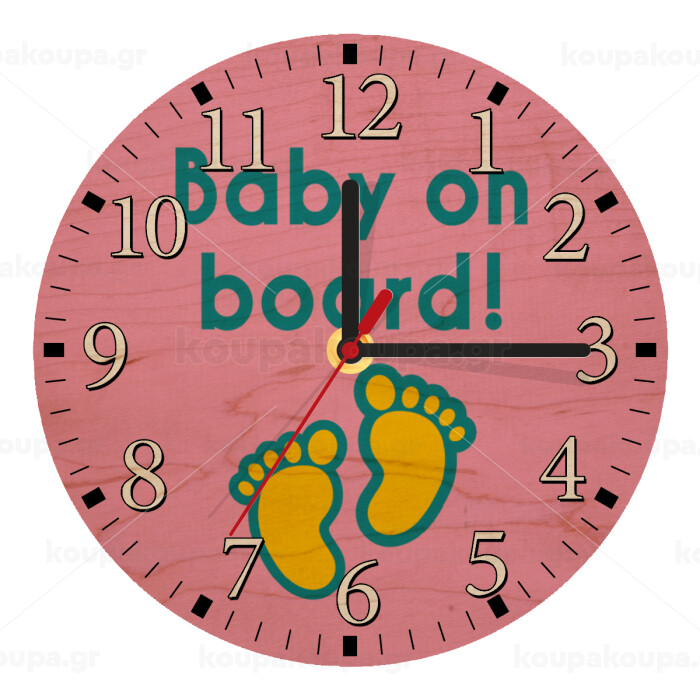 Baby on Board πατουσα Κορίτσι, Ρολόι τοίχου ξύλινο plywood (20cm)