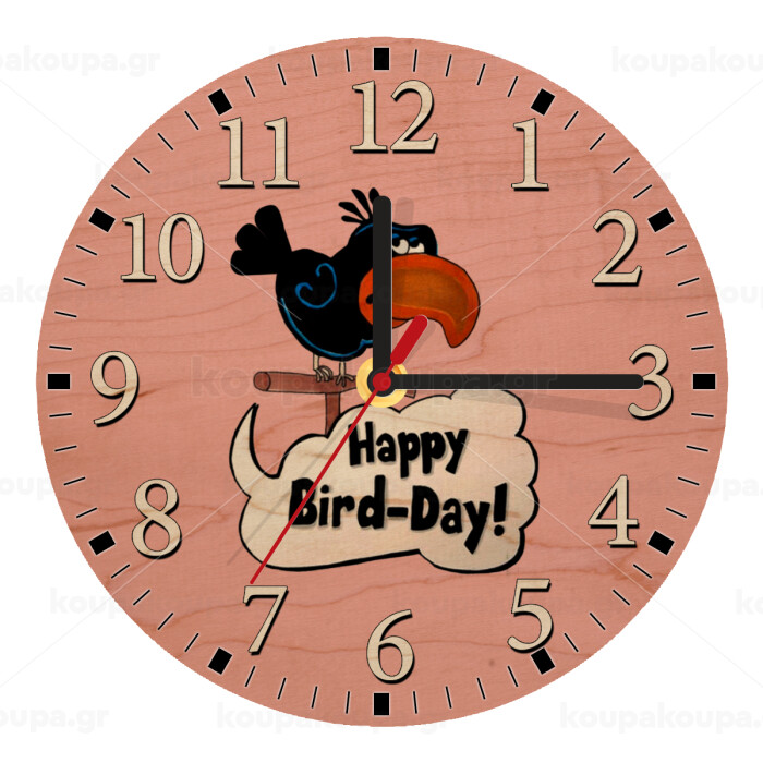 Happy Bird Day, Ρολόι τοίχου ξύλινο plywood (20cm)
