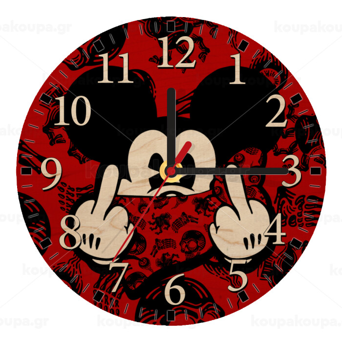 Mickey the fingers, Ρολόι τοίχου ξύλινο plywood (20cm)