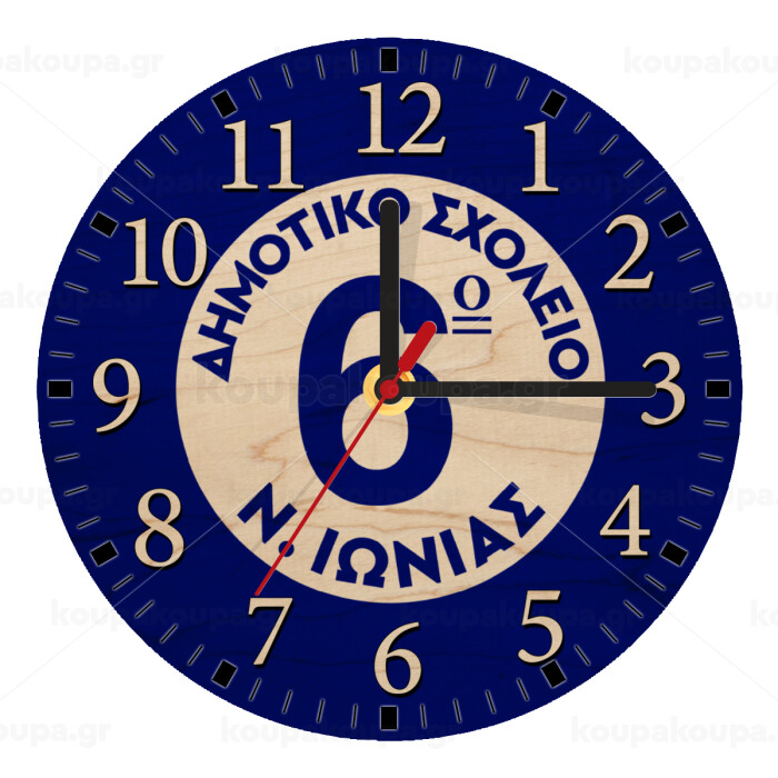 Σχολικό σήμα κλασικό μπλε, Ρολόι τοίχου ξύλινο plywood (20cm)