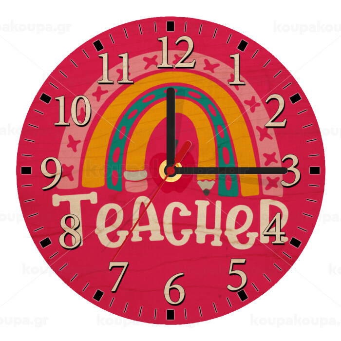 Rainbow teacher, Ρολόι τοίχου ξύλινο plywood (20cm)