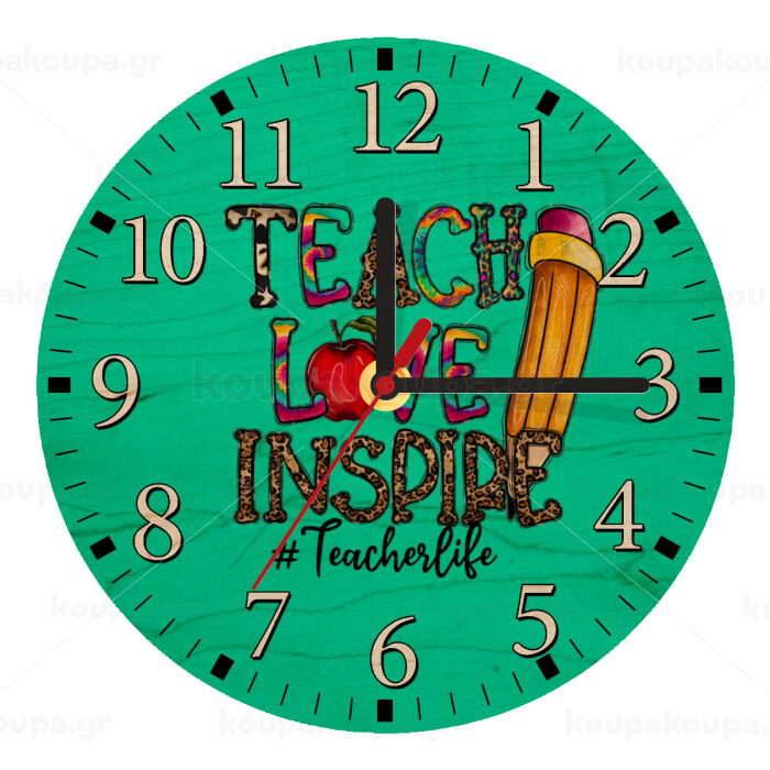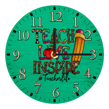 Teach, Love, Inspire, Ρολόι τοίχου ξύλινο plywood (20cm)