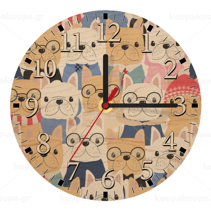 Σκύλοι, Ρολόι τοίχου ξύλινο plywood (20cm)