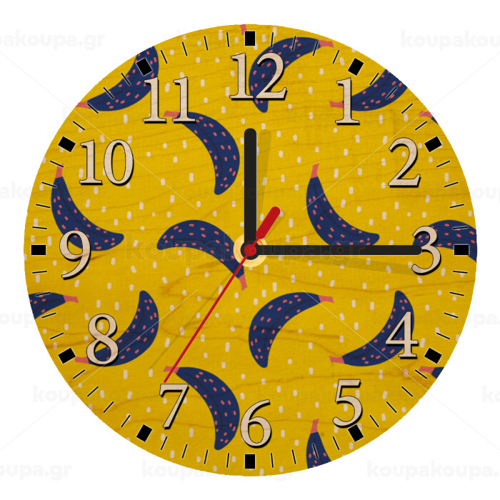Yellow seamless with blue bananas, Ρολόι τοίχου ξύλινο plywood (20cm)