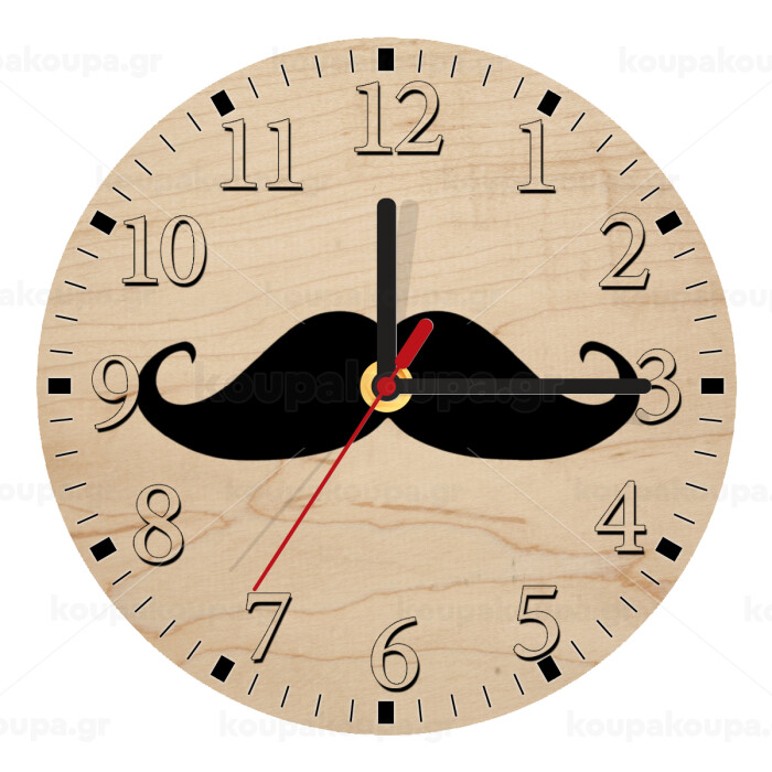 Μουστάκι, Ρολόι τοίχου ξύλινο plywood (20cm)