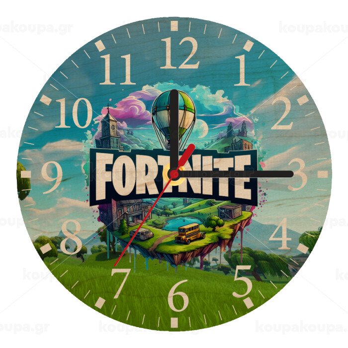 Fortnite land, Ρολόι τοίχου ξύλινο plywood (20cm)