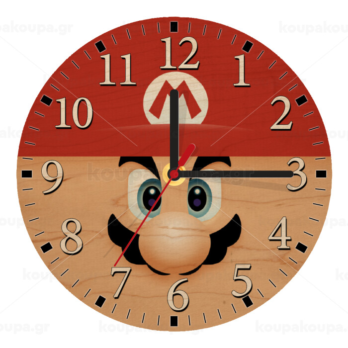 Super mario flat, Ρολόι τοίχου ξύλινο plywood (20cm)