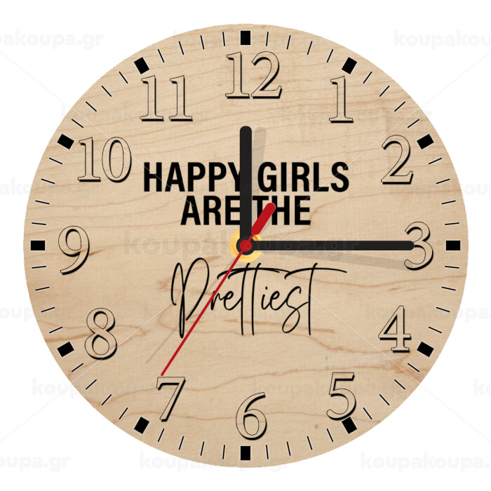 Happy girls are the prettiest, Ρολόι τοίχου ξύλινο plywood (20cm)