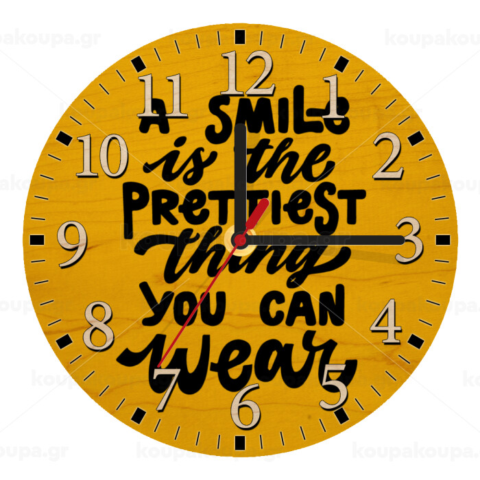 A smile is the prettiest thing you can wear, Ρολόι τοίχου ξύλινο plywood (20cm)
