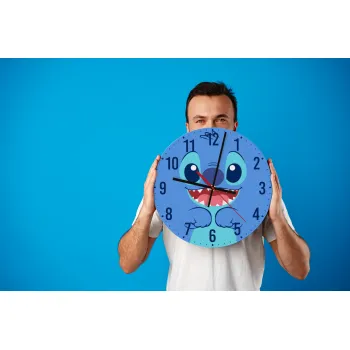 Lilo & Stitch blue, Ρολόι τοίχου ξύλινο (30cm)