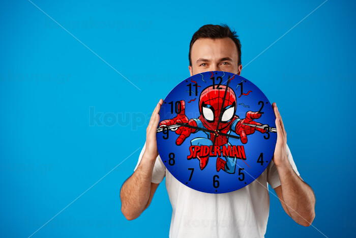 Spiderman flying, Ρολόι τοίχου ξύλινο (30cm)