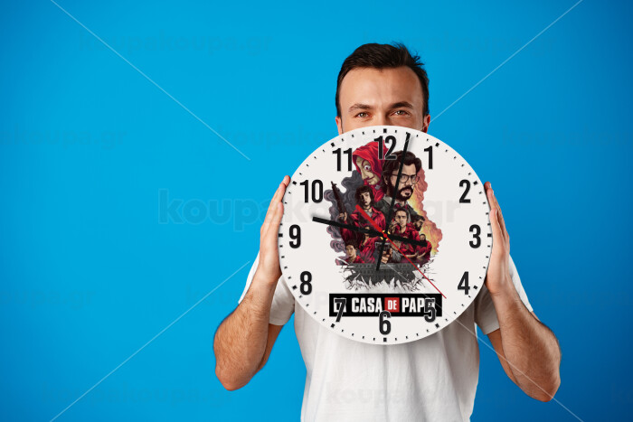 La casa de papel drawing cover, Ρολόι τοίχου ξύλινο (30cm)