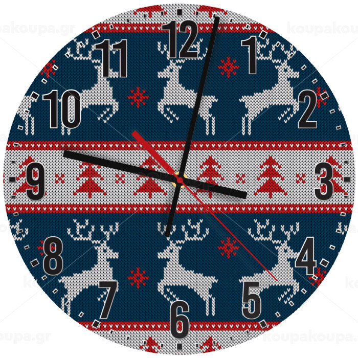 Χριστουγεννιάτικο πλεκτό ελάφια μπλε, Ρολόι τοίχου ξύλινο (30cm)
